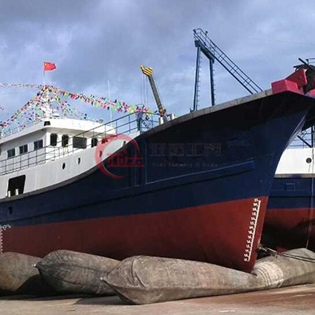 重物起重运动、船舶上下水用气囊,是一种具有我国自主知识产权的创新产品,广泛应用在船舶上下水、沉箱起重移运、其它重物搬运、水下安装工程的助浮等领域。船用气囊的应用受场地限制少,无需大型的机械设备,因此能够缩短工程周期、节省大量资金。经过二十多年的发展实践,证明这种产品具有安全高效、绿色环保、机动灵活等特点。