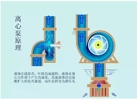 自吸离心泵所以能把水送出去是由于离心力的作用。水泵在工作前,泵体和进水管必须罐满水行成真空状态,当叶轮快速转动时,叶片促使水很快旋转,旋转着的水在离心力的作用下从叶轮中飞去,泵内的水被抛出后,叶轮的中心部分形成真空区域。水泵的水在大气压力(或水压)的作用下通过管网压到了进水管内。这样循环不已,就可以实现连续抽水。在此值得一提的是:自吸离心泵启动前一定要向泵壳内充满水以后,方可启动,否则将造成泵体发热,震动,出水量减少,对水泵造成损坏(简称“气蚀”)造成设备事故!