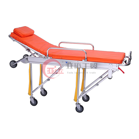 担架的床面可按实际操作要求调节成前倾或后倾状态。床靠背采用可锁定式气动弹簧支撑,可在0-60度范围内无级调节。配置前后固定架,将担架车安装在救护车上适当位置可锁定担架。